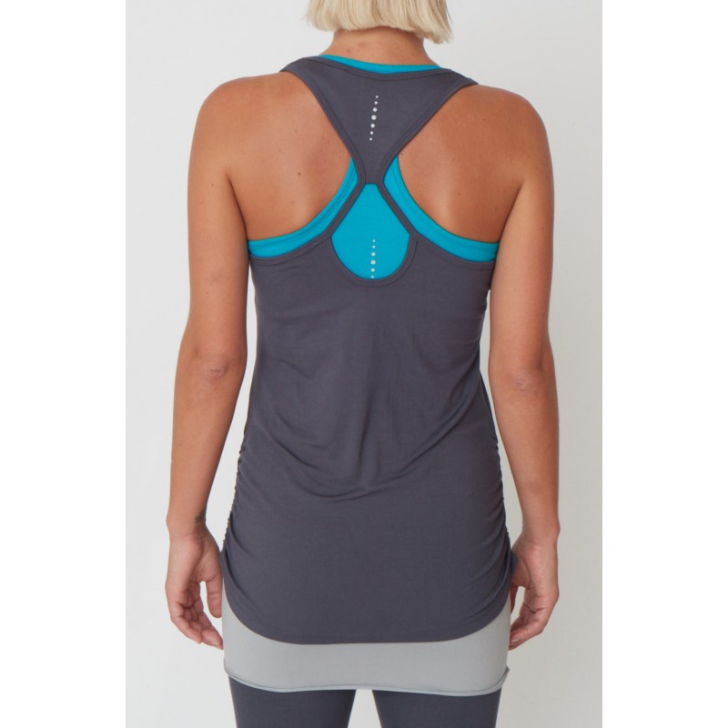 De Chi Racer back is een vederlicht yoga hemd, gemaakt van zijdezacht bamboe, dat ideaal is over een Balance Bra en andere bh topjes. met mooie detals en uitgesneden rugzijde.
