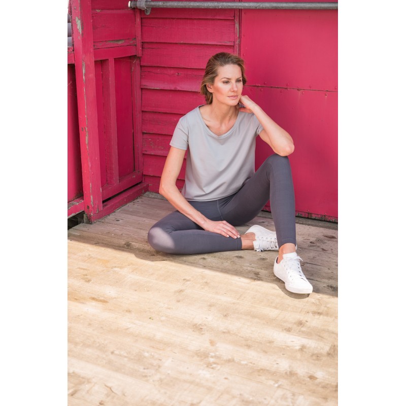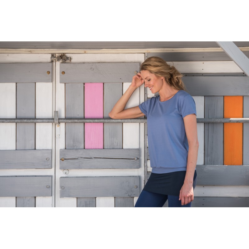 Lekker loszittend yoga shirt met brede heupband. Voor tijdens je workout of gewoon lekker thuis. Ideaal voor vollere vrouwen en als je van een losse fit houd.